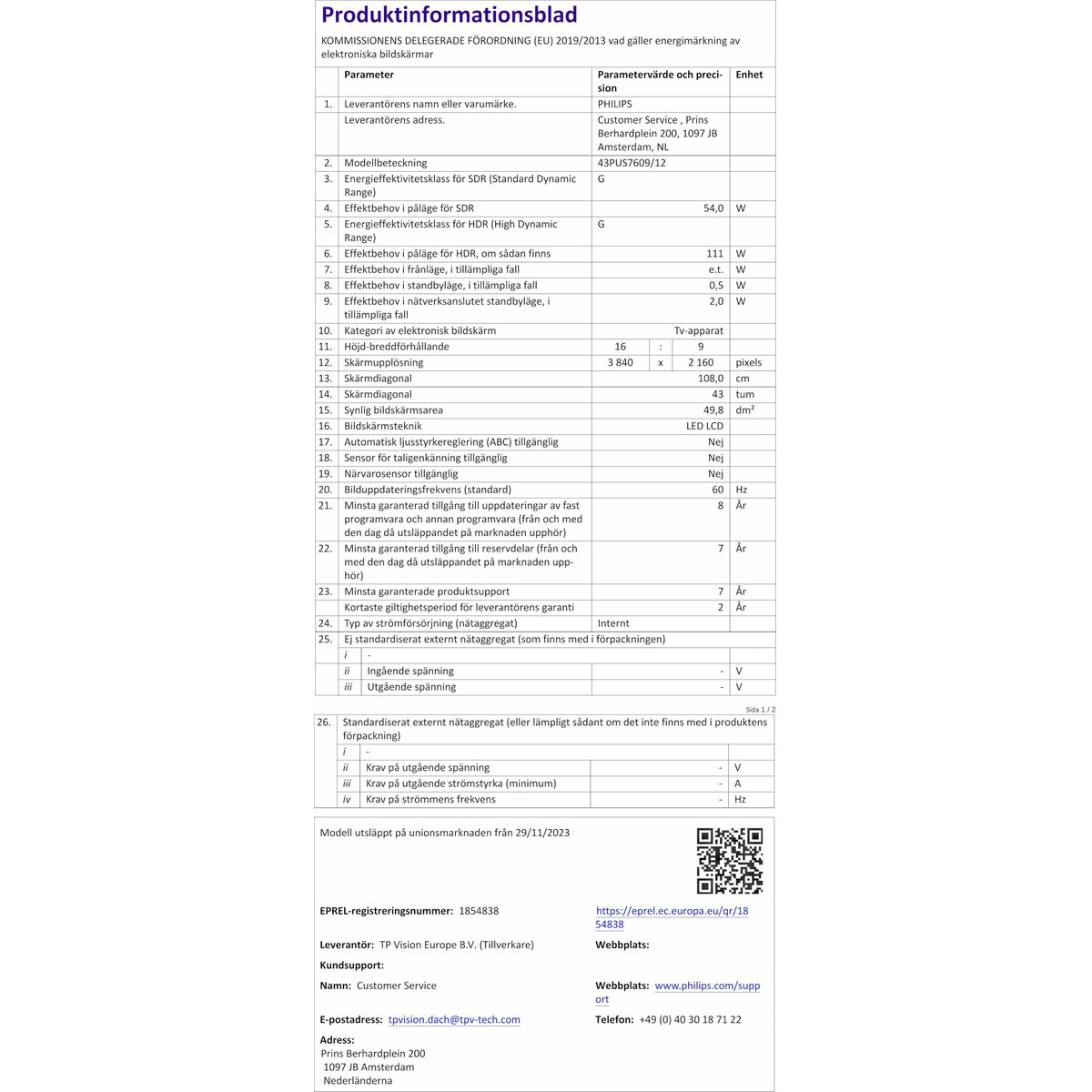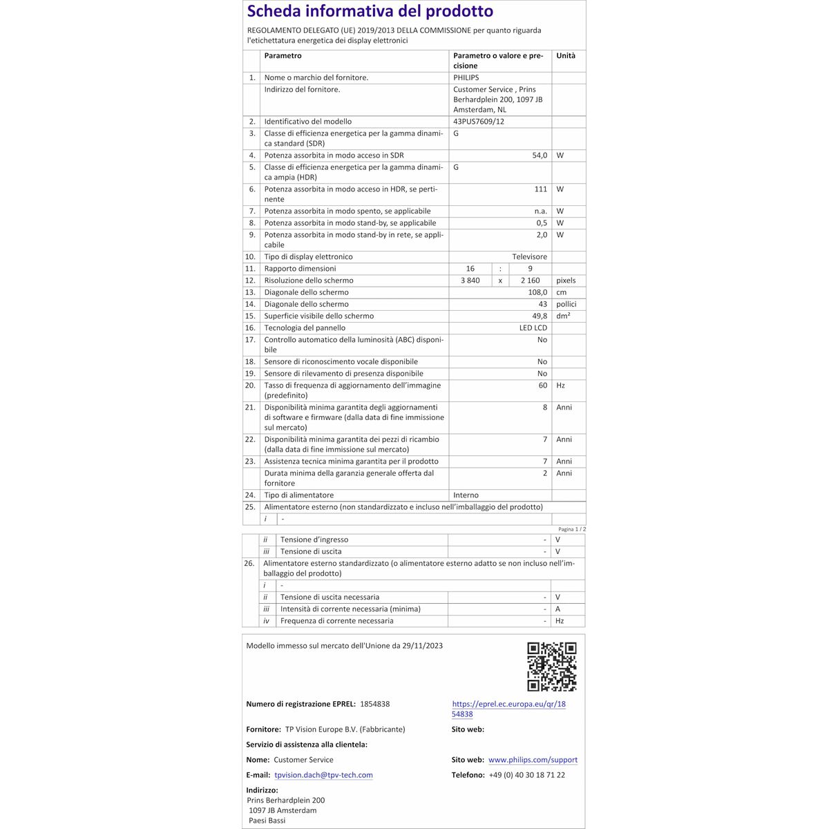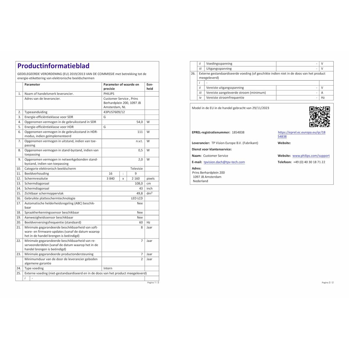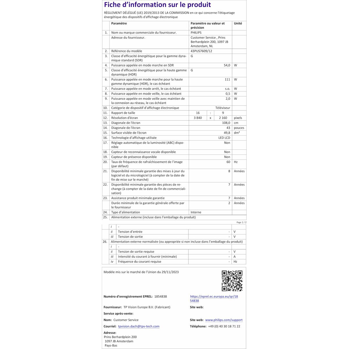 Home page  »  Informatique | Électronique  »  Télévisions et Smart TV   »   TV intelligente Philips 43PUS7609/12